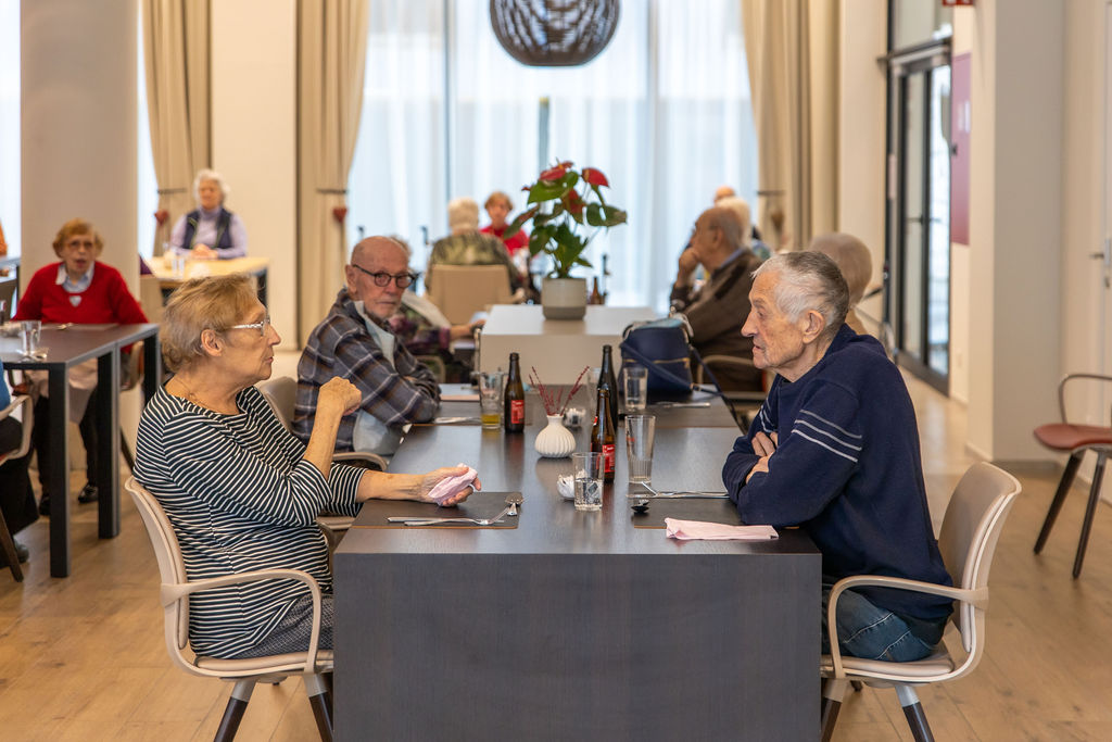 Jeannine: "We worden hier schitterend opgevangen. Eline is een 'gouden', schrijf dat maar op! Sinds kort eten we 's middags in de bistro beneden. Het is altijd heel lekker en we slaan eens een babbeltje met de andere bewoners. Dat ongedwongen sociaal contact doet deugd. Ook conciërge Paul en zijn echtgenote Carine zorgen voor een plezante sfeer. Zo'n warme mensen! Ik kan mij geen betere nieuwe thuis voorstellen.